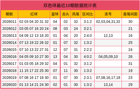 双色球第2026020期奖号为:01、13、14、21、24、30 + 02,其中红球号码奇偶比为3:3,大小比为3:3,012路比为3:2:1,三区比为1:3:2。
