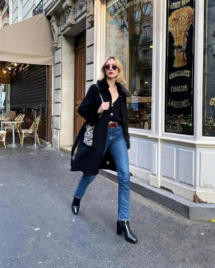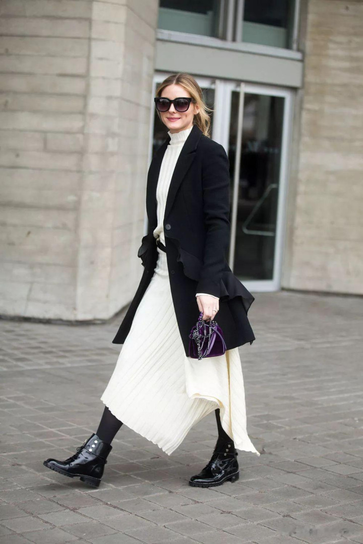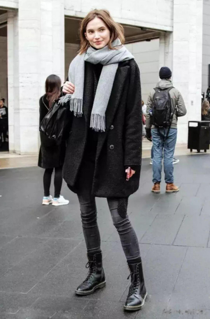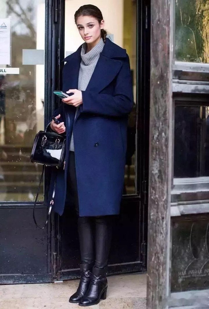 大衣+短靴(切尔西靴、马丁靴): 利落、帅气、不劳作的端淑。