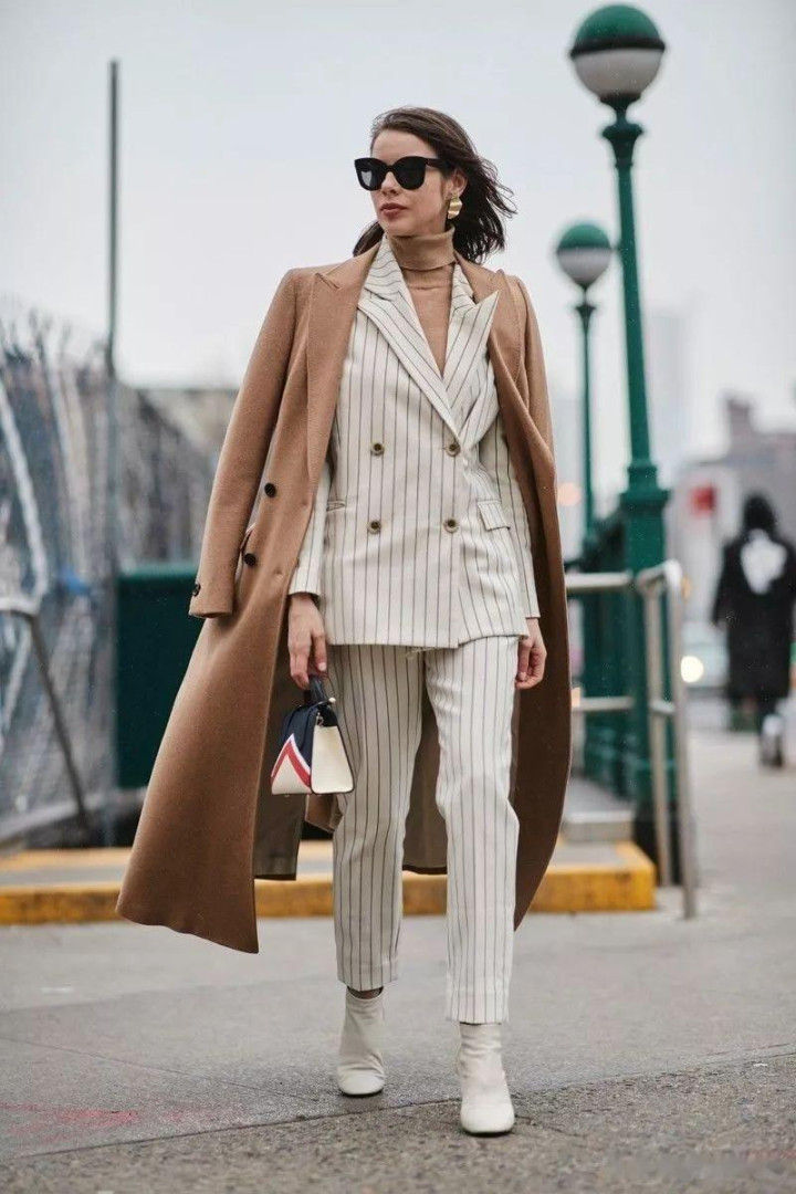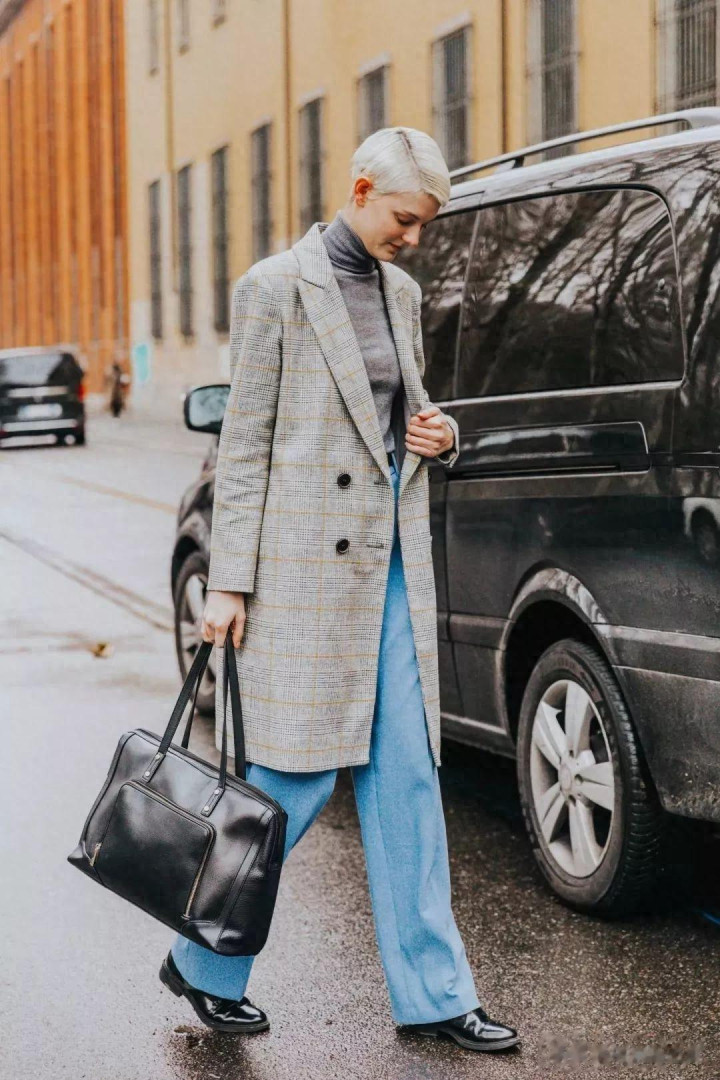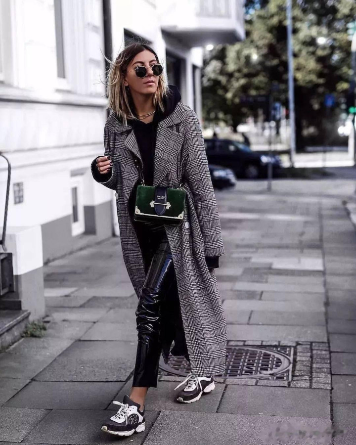 大衣+清醒鞋: 当下最火的混搭,轻松感与年青态的代名词。